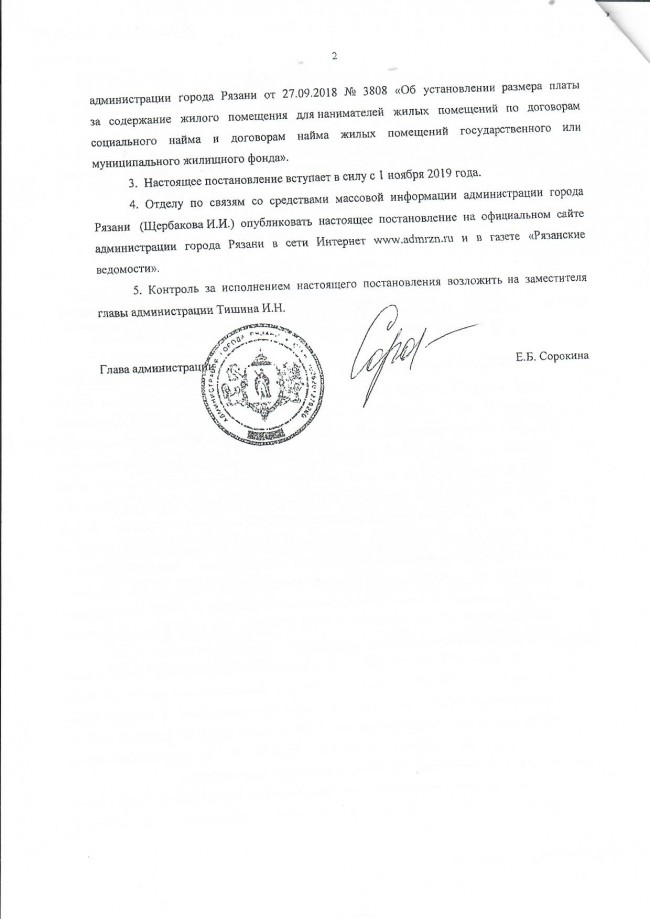 Постановление Администрации г. Рязани об изменении тарифов по содержанию жилья с 1 ноября 2019